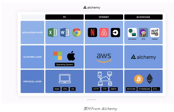 与苹果和亚马逊作为开发者在个人电脑、智能手机和云端构建开发平台的方式类似,Alchemy正在为即将到来的Web3时代构建操作系统和开发者平台。Alchemy正在构建一个在现代区块链生态赋能开发者的平台型公司。